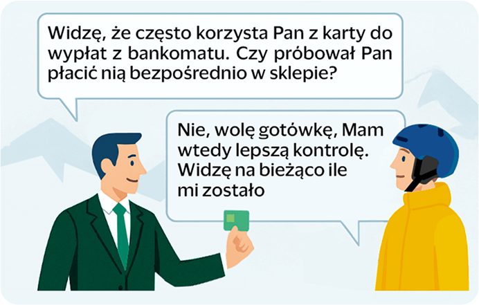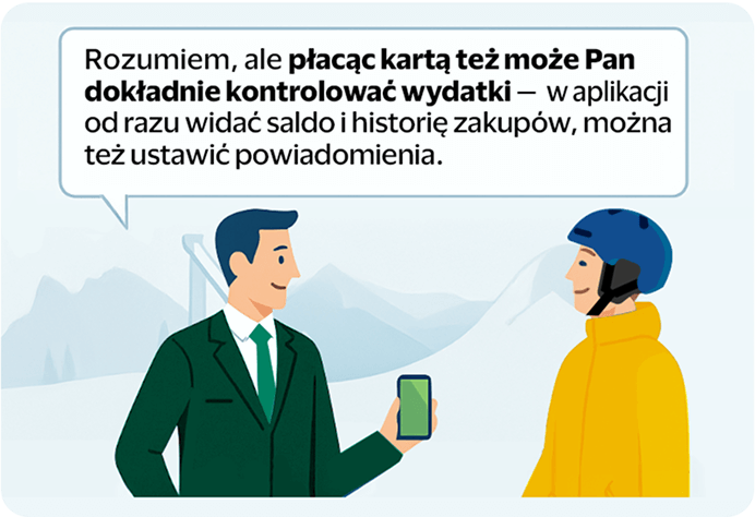 - przełamywać obiekcje dotyczące płacenia kartą (kontrola wydatków, bezpieczeństwo, czas transakcji),